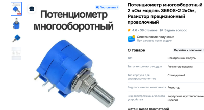 Потенциометр многооборотный 2 кОм модель 3590S-2 2кОм, Резистор прецизионный проволочный